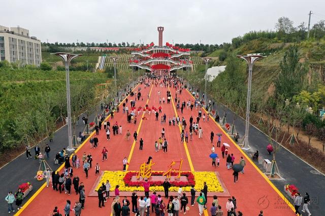 10月2日,维修改造后的胜利街“网红桥”(天字桥),与绚丽的胜利主题花坛、飘扬的国旗、巍然屹立的太原解放纪念碑相映成景,既勾勒出庄严厚重的历史感,更烘托出欢乐祥和的节日氛围,吸引了众多市民游客。牛利敏 摄